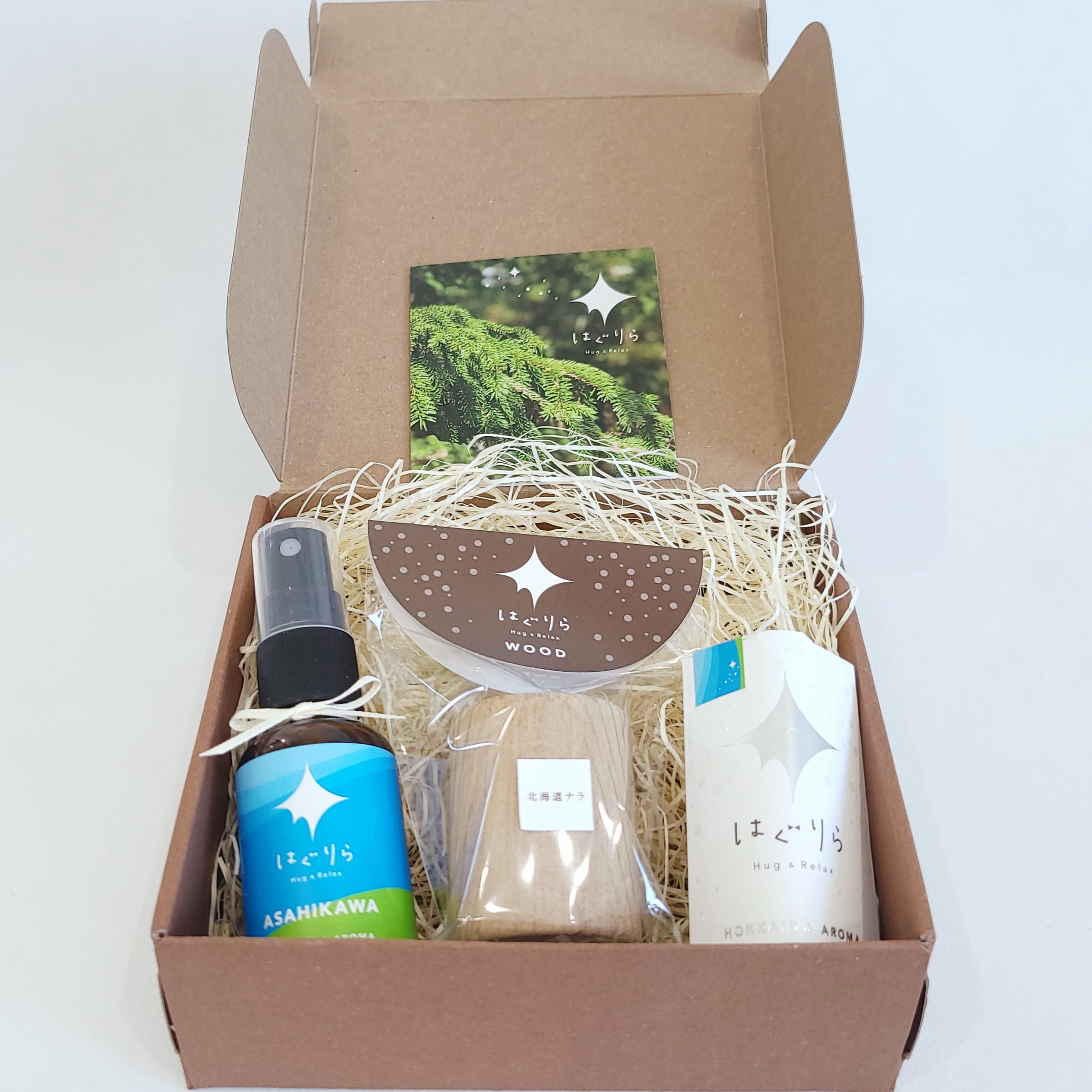 ブレンド:アカエゾマツ、モミ、ローズマリー、ラベンダー、カモミール etc. 香りの特徴…川のせせらぎと木々のさざめきが奏でる、澄んだ清らかな香り ●故郷を思う、四季折々の香りに包まれてハッピーに かおり(エッセンシャルオイル)を北海道の木製品アロマウッドにたらしてお使いいただくと、より一層北海道の香りをゆっくりとお楽しみいただけます。 また、ミストはマスクスプレーとしてもご利用いただけます。心地よいアロマの香りで気分をリフレッシュし、マスクをより効果的で快適に使用することができます。ミストをマスクスプレーとしてご使用させる場合は、ご使用になる前にマスクの外側にシュッシュッと吹きかけ、5回ほど振ってからマスクを使用してください。 ◆セット内容:かおり(エッセンシャルオイル)5ml / アロマミスト 30ml / アロマウッド/ギフトボックス ※こちらはギフトボックス込みのギフトセットになります